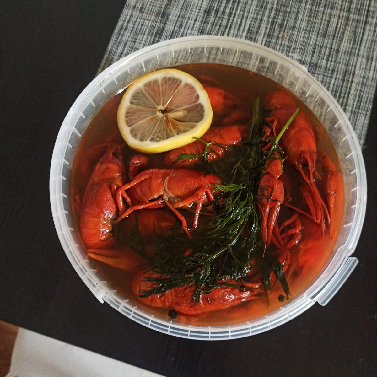🥄 Zutaten: Flusskrebse, Wasser, dunkles Bier, Salz, Dill, Lorbeerblatt, Pfeffer, Butter, Gewürzmischung