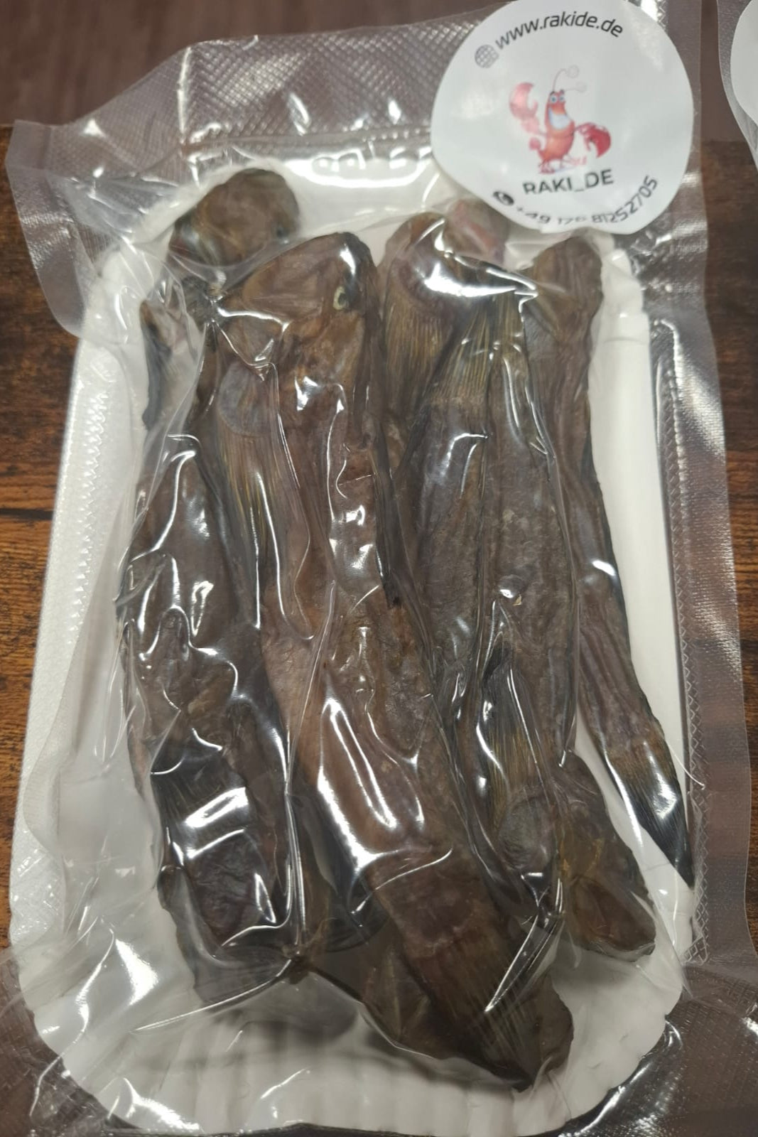 Getrockneter Ostsee-Grundel – ein traditioneller Snack mit intensivem Geschmack und Meeresaroma. Perfekt zu Getränken und geselligen Momenten.